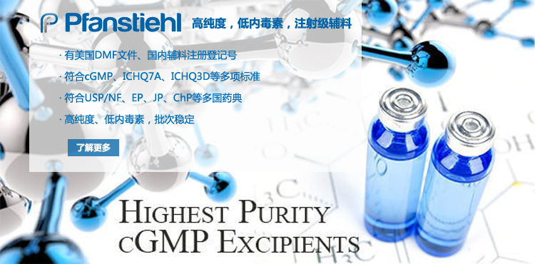 “熱烈祝賀Pfanstiehl的注射級甘氨酸Glycine(G-140)喜獲CDE登記號F20250000403, 這是Pfanstiehl產品獲得的第18個CDE登記號!”甘氨酸在醫藥輔料制劑中應用廣泛,, 可作為緩沖劑,增溶劑,穩定劑等,具有諸多優勢。Pfanstiehl秉承一貫高品質理念,為滿足全球生物制藥行業對于高品質甘氨酸的需求,隆重推出的注射級甘氨酸Glycine (G-140), 具有超高純度,超低內毒素,超低金屬殘留的特點,單獨檢測29種金屬離子,并且新增DNA,RNA,DNA酶,RNA酶和脂肪酶,亞硝酸鹽等多項質量指標的檢測,符合多國藥典規定(USP, EP, BP, JPE, ChP),可用于生物治療性藥物和疫苗的生產。產品信息:· 產品名稱:Glycine, High Purity, Low Endotoxin, Low Metals, USP, EP, BP, JPE, ChP (G-140)· 中文名稱:甘氨酸· 分子式:C2H5NO2· 分子量:75.07 g / mol· CAS號:56-40-6· 產品貨號:G-140產品特點: · 超高純度,超低內毒素,超低微生物含量,超低金屬雜質殘留· 質量指標新增DNA,RNA,DNA酶,RNA酶,脂肪酶和亞硝酸鹽檢測· 符合多國藥典:USP, EP, BP, JPE, ChP· 符合ICH Q3D標準· 符合GMP標準· 已獲DMF和CDE登記號 產品應用:· 緩沖劑· 穩定劑· 增溶劑如果您對Pfanstiehl注射級別Glycine G-140感興趣,歡迎聯系Pfanstiehl 中國區代理商北京西美杰科技有限公司獲得如下詳細的產品概況說明文件和測試樣品。Pfanstiehl Inc.最新產品系列如下,歡迎聯系北京西美杰科技有限公司獲取100g裝免費樣品。北京西美杰科技有限公司為Pfanstiehl中國代理,為客戶提供完善的技術支持與售后服務。歡迎撥打西美杰客服電話400-050-4006或者登陸網站www_xmjsci_com.8416e.com了解更多信息。 更多>